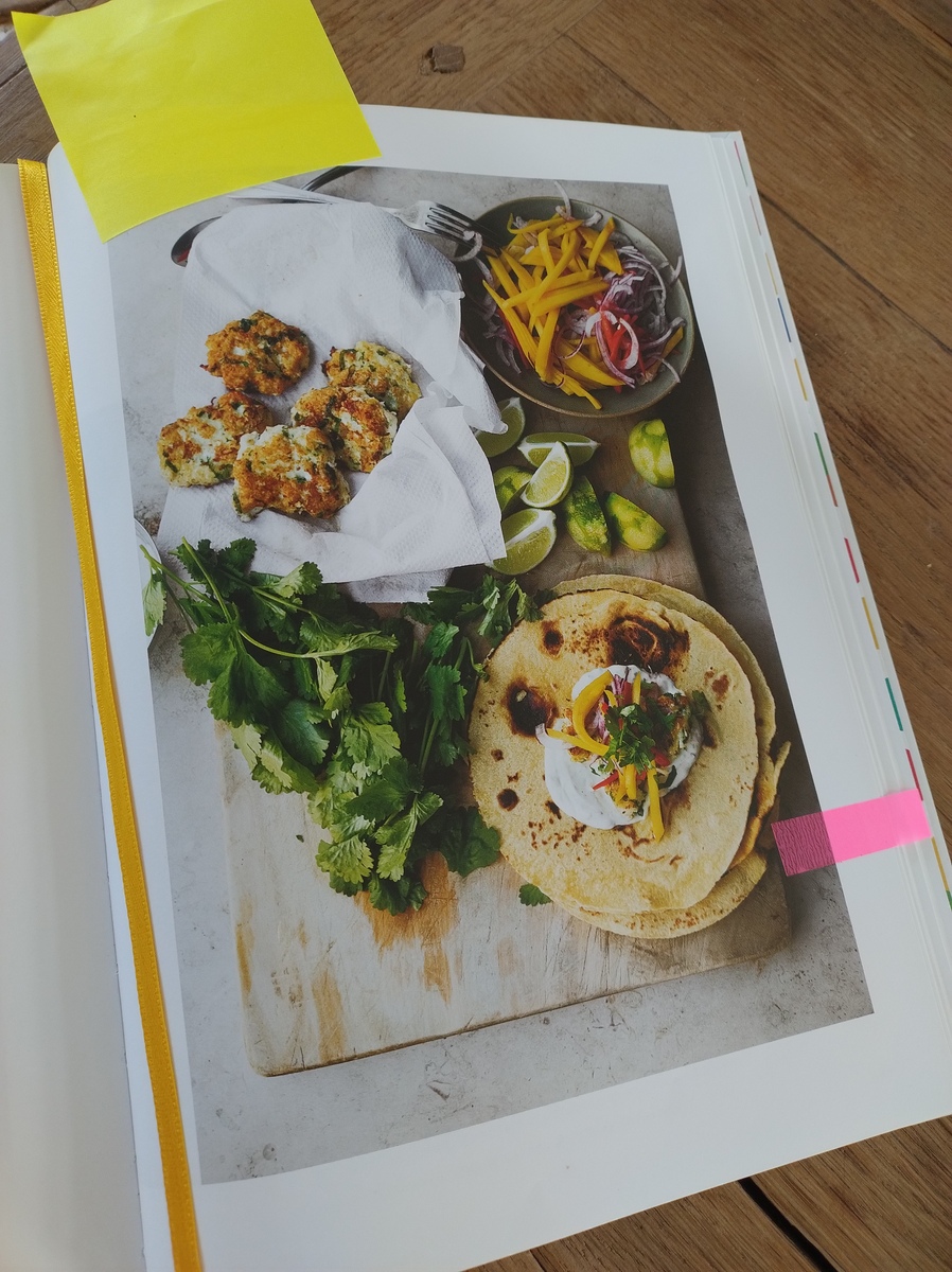 Serveer de taco’s warm met doormidden gesneden viskoekjes, een lepel yoghurt en de mangomix. Bestrooi met de overgebleven koriander en knijp er wat limoensap over uit. Eet smakelijk!