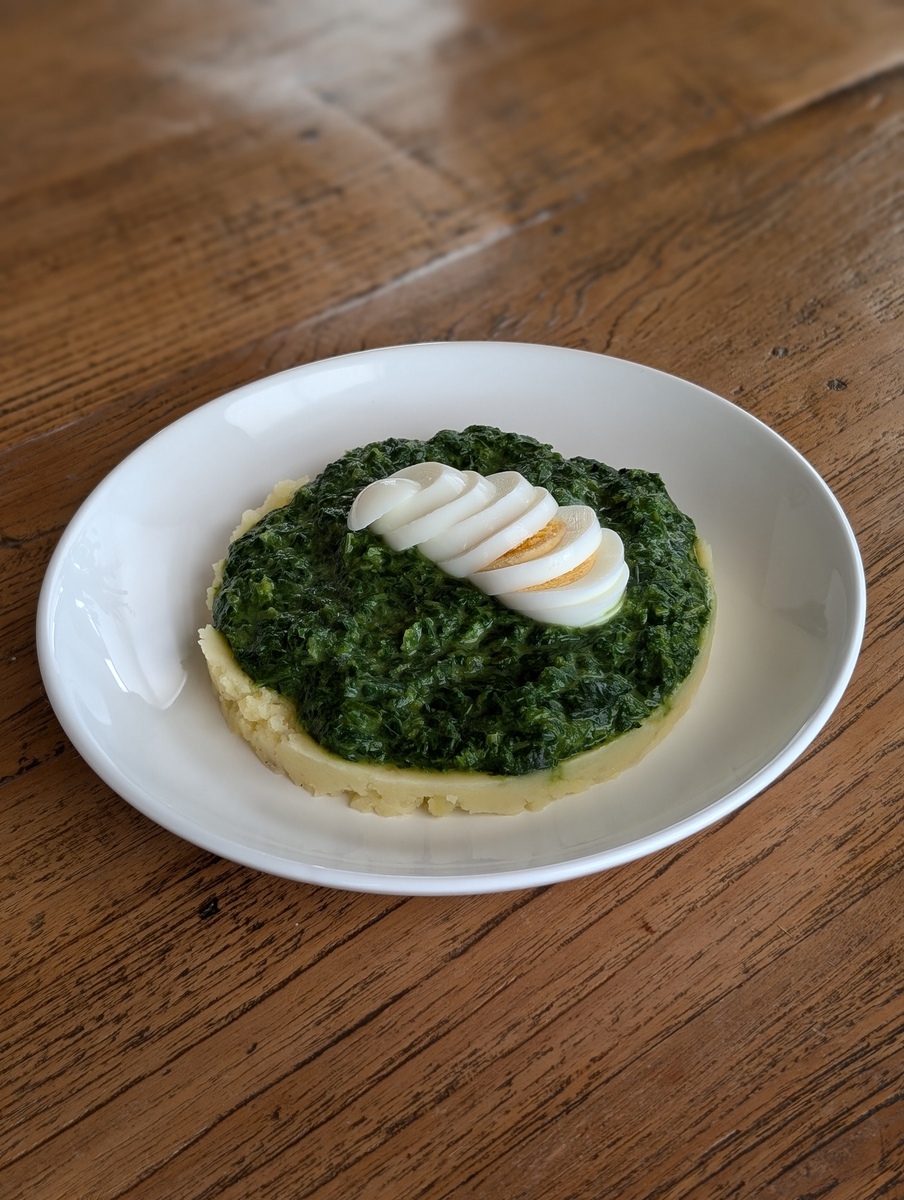 Doe de bevroren spinazie in een pannetje en laat dit op laag vuur langzaam warm worden