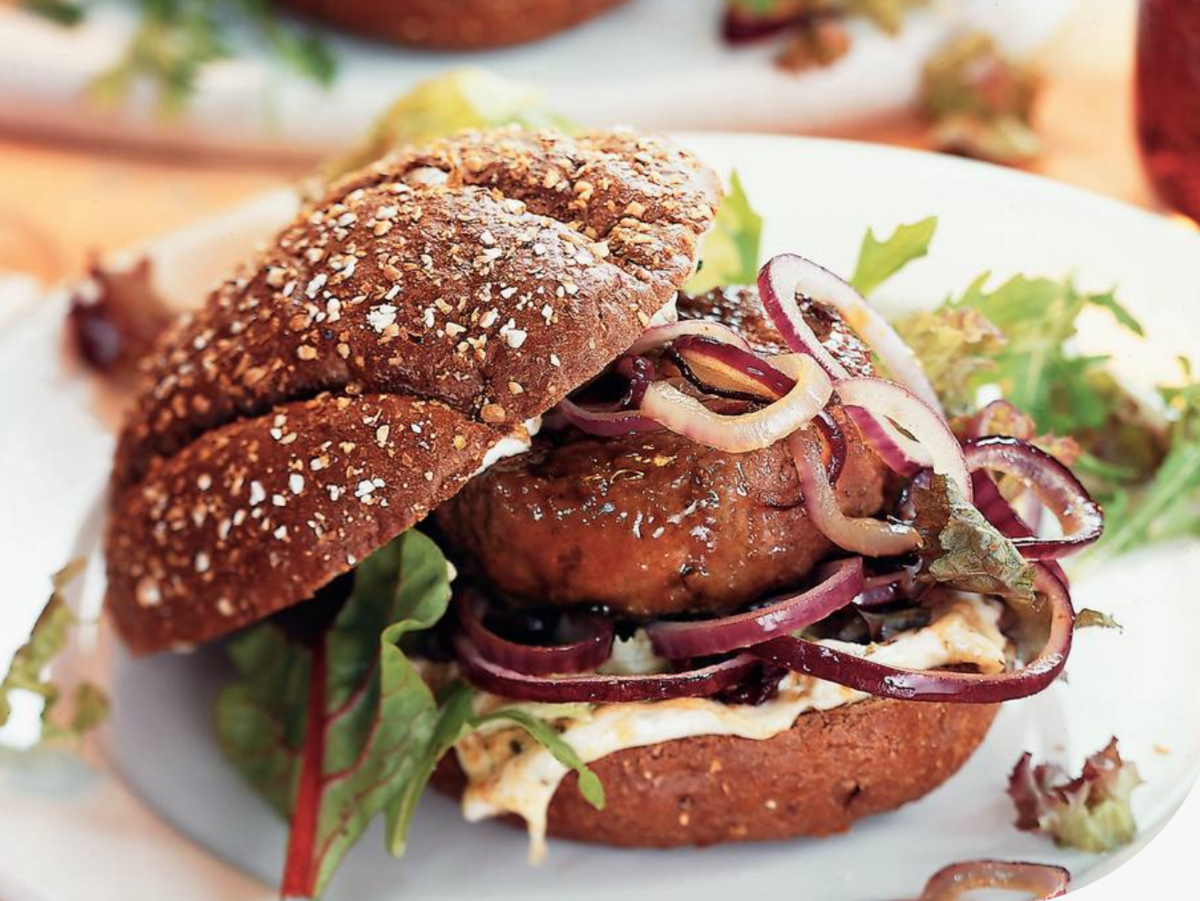 Zijn de bolletjes al klaar? Doe dan nu de tartaar, sla, uiringen en de saus erop. Nee wacht, snij wel eerst de bolletjes in tweeën en doe het allemaal er tussen. Anders wordt het zo lastig eten. Dat wordt het trouwens sowieso wel dus steek maar zo’n leuk prikstokje in het geheel om het allemaal een beetje bij elkaar te houden voor de foto. Mjam mjam mjam!